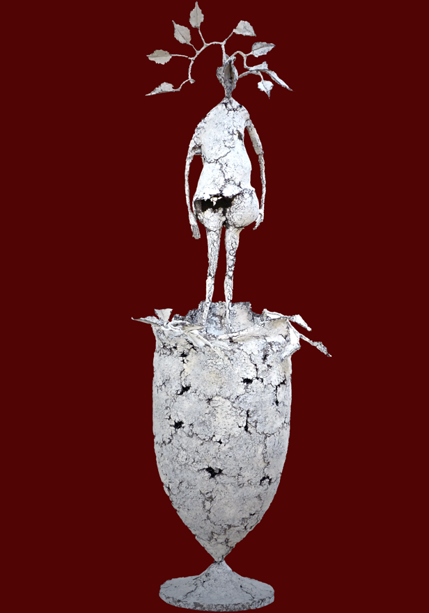 La "peau" ainsi obtenue confère à la sculpture une étonnante vibration de surface propre à faire naître l'impression d'une étrange vitalité montant du coeur profond de l'oeuvre, comme une terre séchée témoigne du jeu des forces naturelles que sont le vent, le soleil et l'eau, au travail pour donner la vie. Donner la vie mais aussi la retirer.